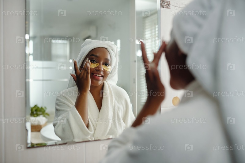 Применение процедуры по уходу за кожей в ванной комнате зеркальное отражение