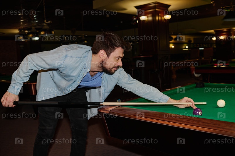 Молодой мужской бильярдист во время игры