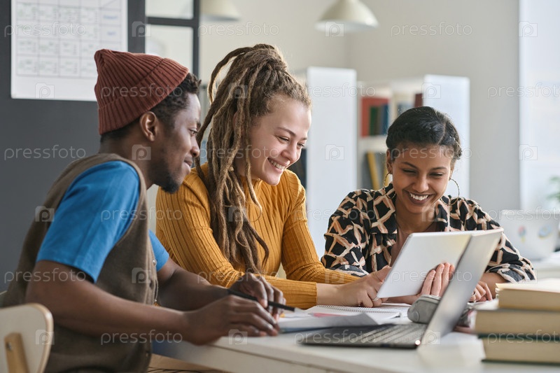 Студенты, использующие планшет в учебе