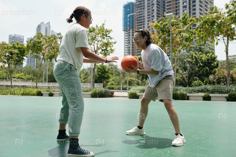 Играть в баскетбол на открытом поле в городской среде