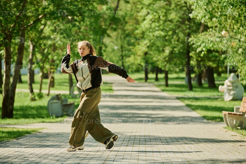 Танцы в парке, окруженные зеленью в солнечный день