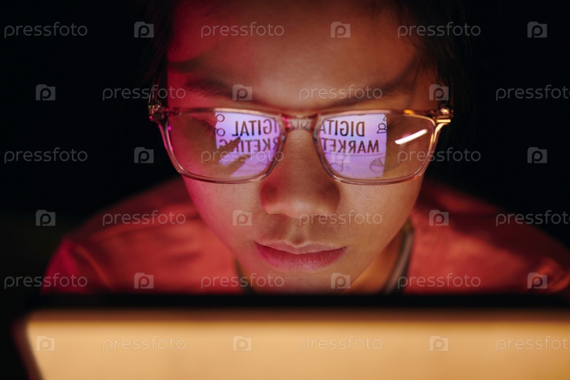 Фокусированный цифровой маркетолог, анализирующий онлайн-данные