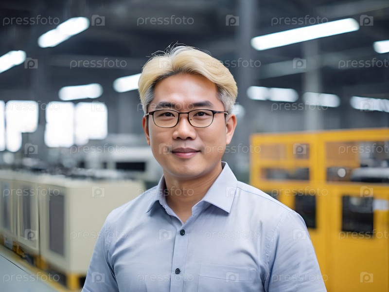 Портрет азиатского мужчины в условиях промышленной фабрики