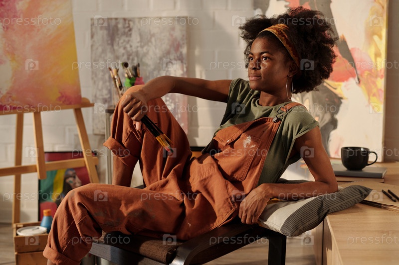 Рисунок афроамериканская женщина размышляет в художественной студии