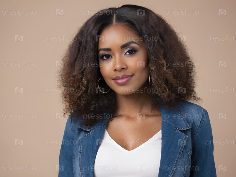 Портрет улыбающейся афроамериканской женщины, одетой в джинсовую куртку