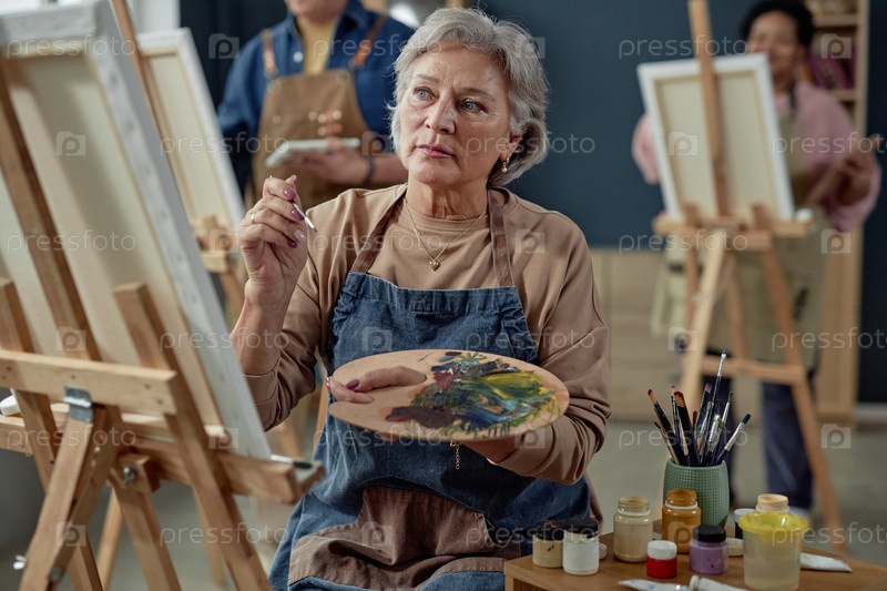 Зрелая женщина рисует картину