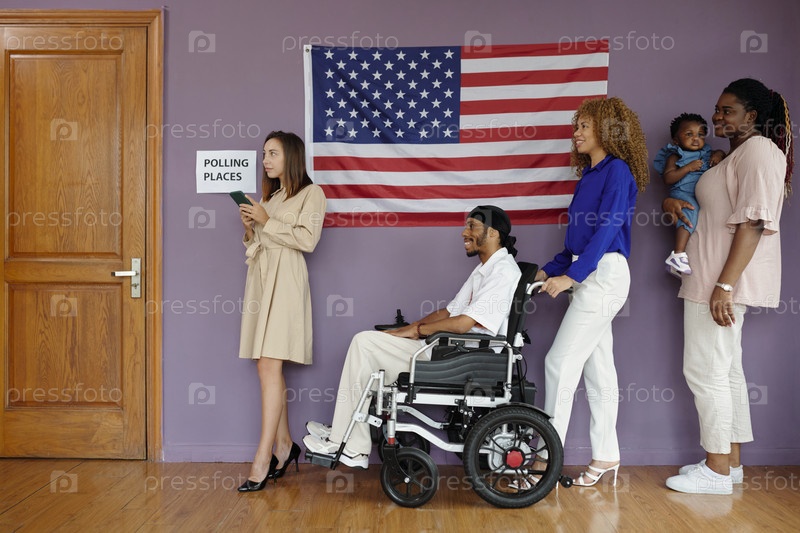 Люди стоят в очереди, чтобы проголосовать