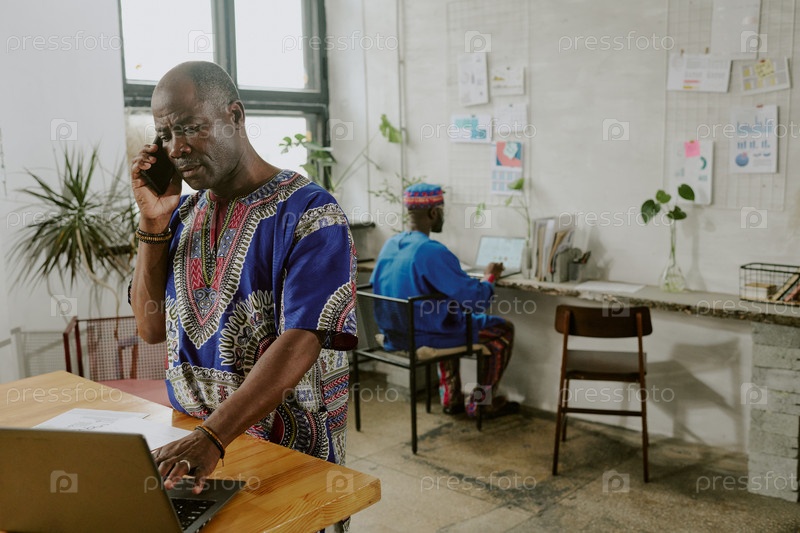 Афроамериканский бизнесмен разговаривает по телефону