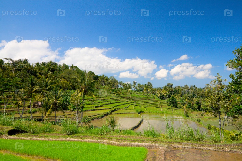 Зеленые рисовые поля на острове Бали