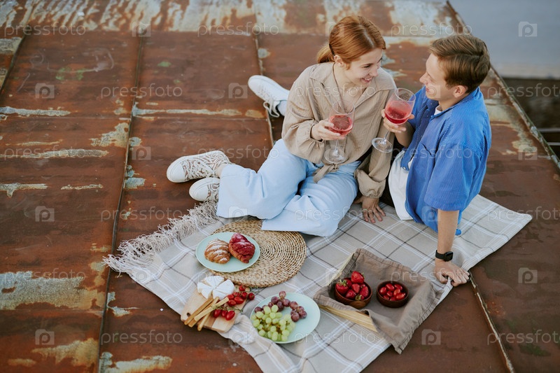 Наслаждаться пикником на открытом воздухе с вином на деревенской поверхности