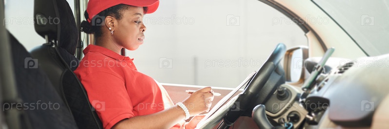 Черная женщина в фургоне-доставщике
