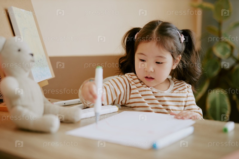 Сосредоточенная девушка рисует за столом