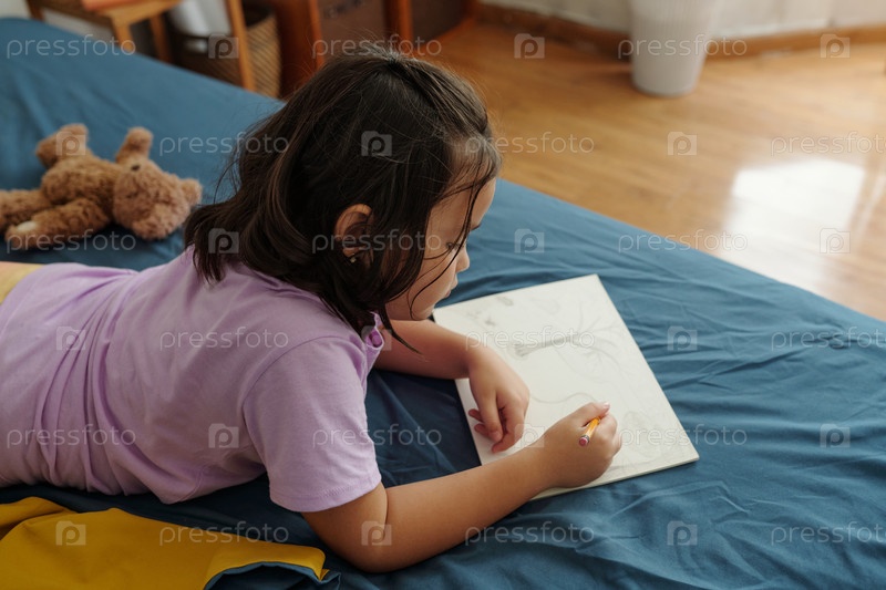 Маленькая девочка рисует картину карандашом