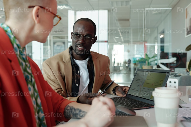 Коллеги обсуждают бизнес-план во время офисной встречи