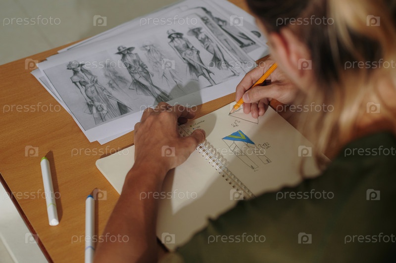 Дизайнер, работающий со своими эскизами