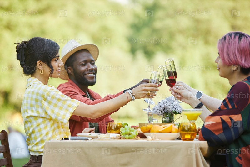 Празднование дружбы на свежем воздухе с азиатскими испаноязычными афроамериканцами