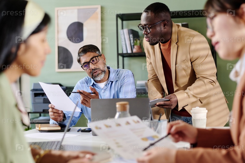 Обсуждение бизнес-стратегии в современной офисной обстановке