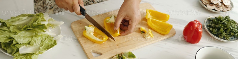 Женщина, режущая овощи для салата
