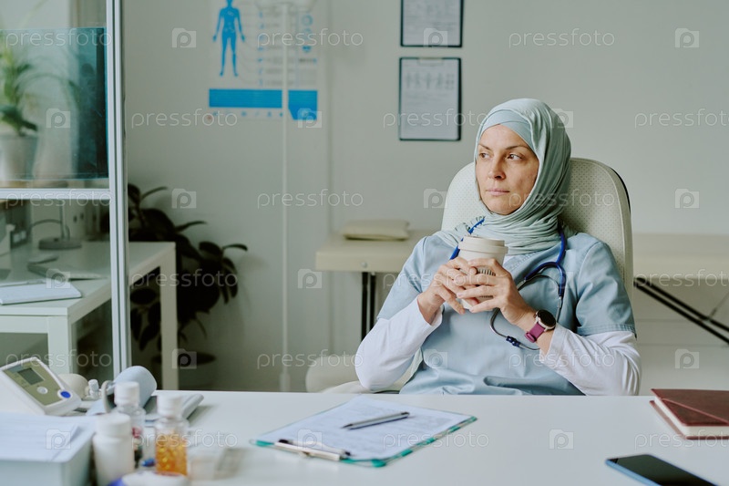 Профессионалы пьют кофе в больничном медицинском кабинете