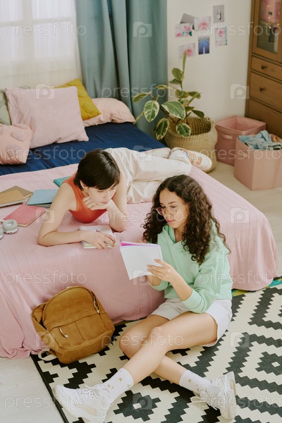 Две женщины учатся вместе в уютной обстановке спальни