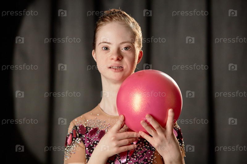 Портрет молодой женщины, держащей блестящий мяч