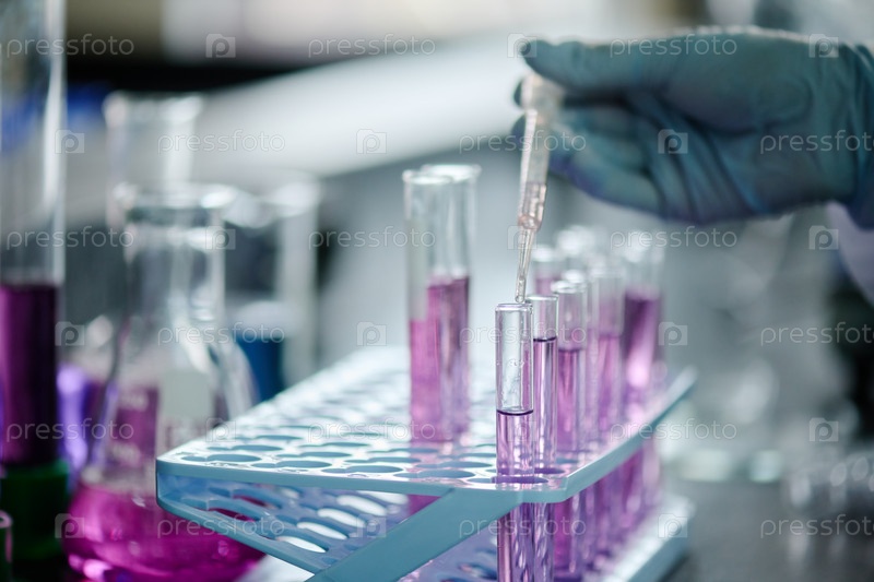 Сброс прозрачной жидкости в колбу