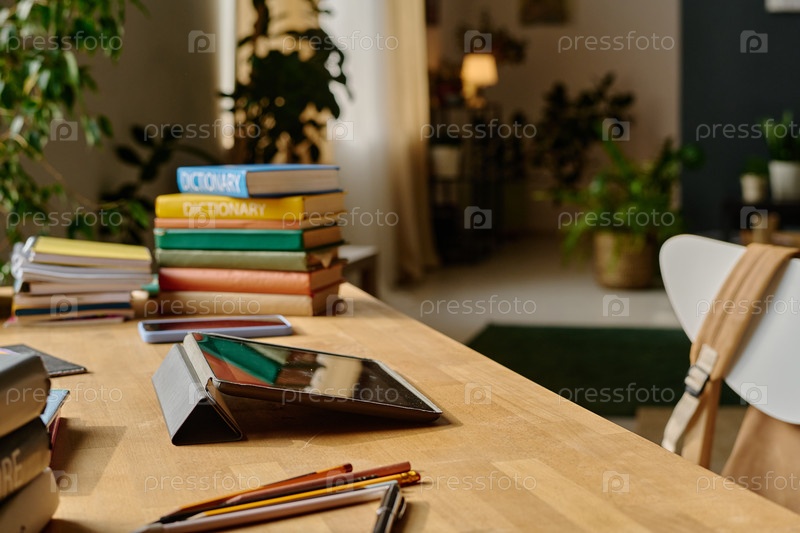 Стол с книгами и планшетная работа