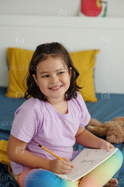 Ребенок рисует картину в эскизной книге
