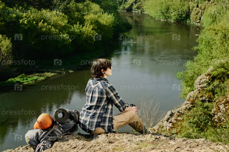Спокойная женщина наслаждается отдыхом во время поездки