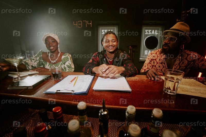 Веселые музыканты, сидящие в баре
