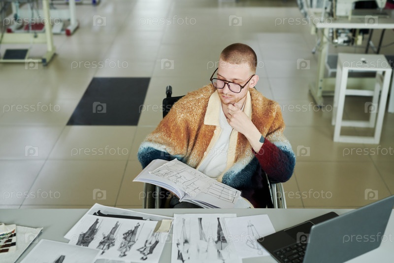 Мужчина смотрит на эскиз модной одежды