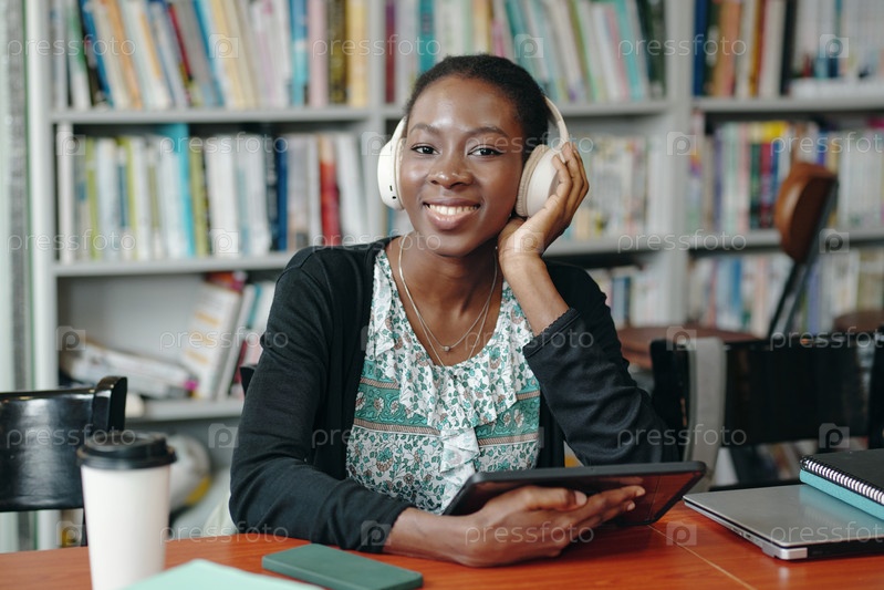 Студент, использующий цифровой планшет в библиотеке