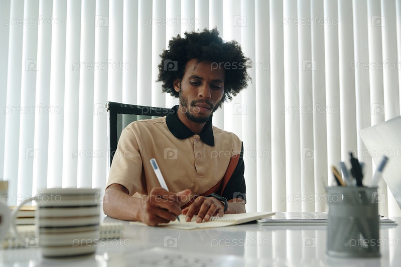 Бизнесмен делает заметки на совещании