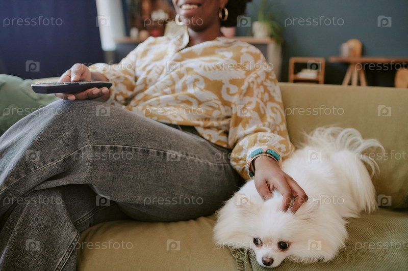 Отдых на диване с собакой в уютной гостиной