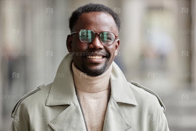 Портрет улыбающегося мужчины в очках и светлом куртке