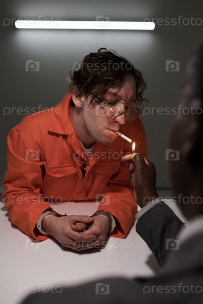 Зажигание сигареты для мужчины, носящего оранжевый комбинезон от другого человека