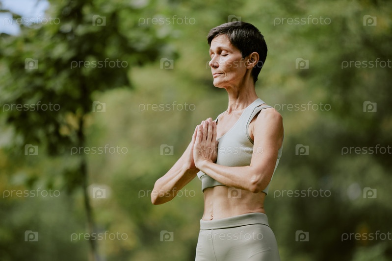 Женщина-пенсионерка, практикующая медитацию
