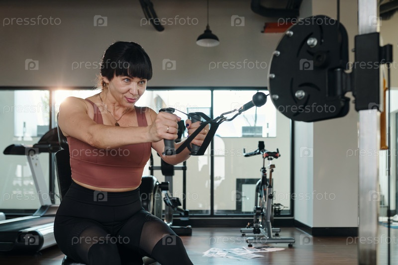 Женщина, выполняющая упражнения с помощью весов в спортзале