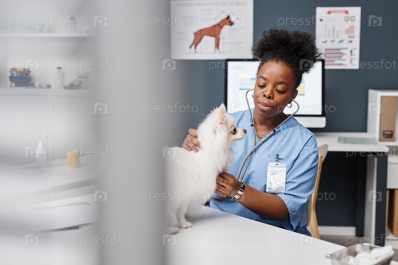 Собака-домашний питомец во время медицинского осмотра в Ветеринарном офисе