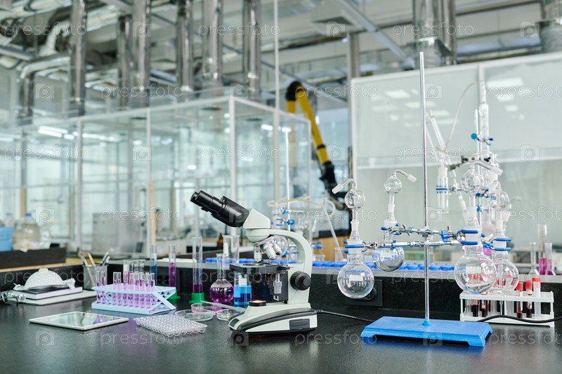 Рабочее место исследователя со стеклянной посудой