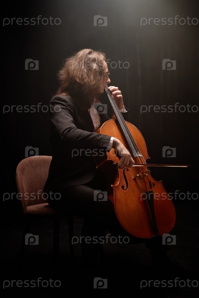 Виртуозный виолончелист репетирует сольный концерт в темной комнате
