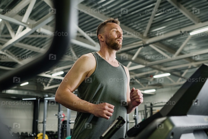 Бегущий на беговой дорожке мужчина