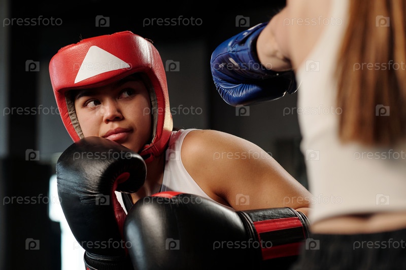 Боксёрка смотрит на соперницу во время боя