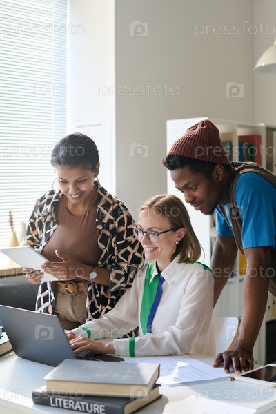 Учительница, использующая ноутбук во время занятий в школе или колледже