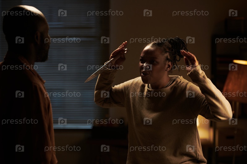Разгневанная женщина с острым ножом в руке