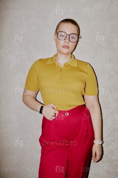 Стильная девушка позирует перед камерой