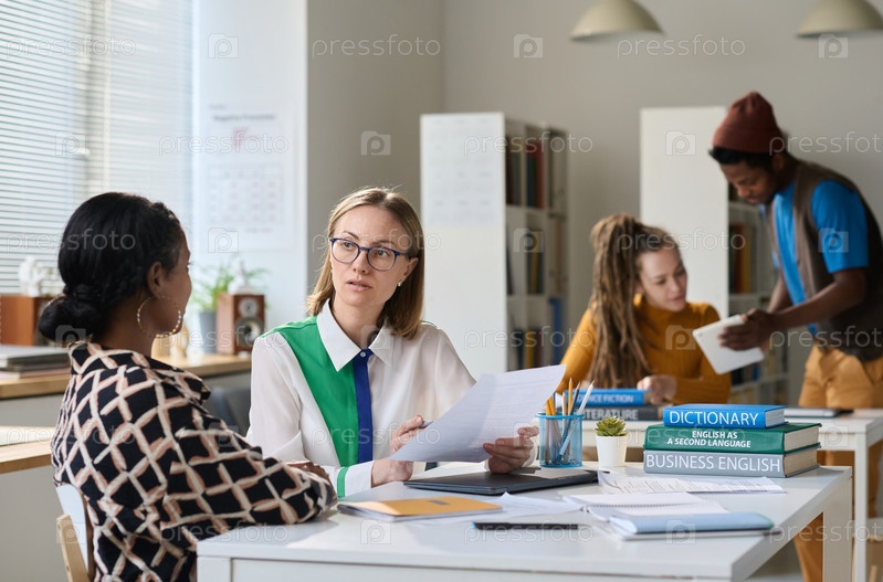 Учительница разговаривает со студентом