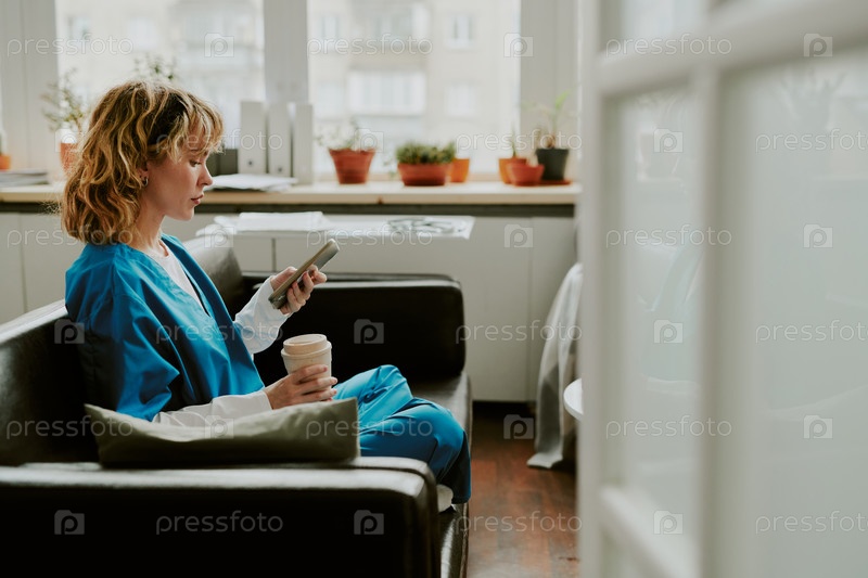 Медсестра проверяет свои социальные сети