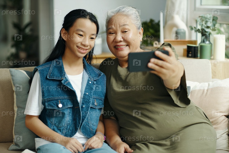 Бабушка делает селфи с внучкой