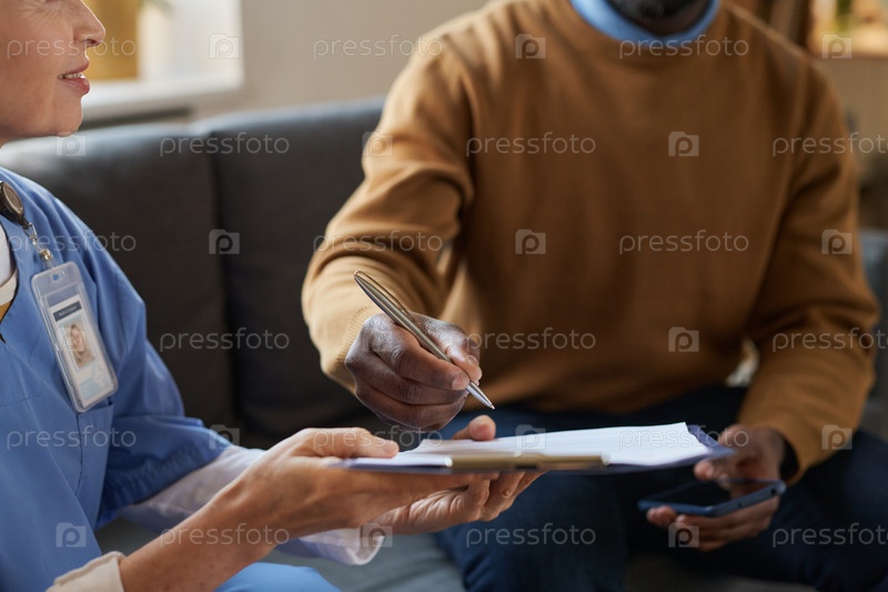 Закрытие соглашения о подписании чернокожего человека для медицинских услуг